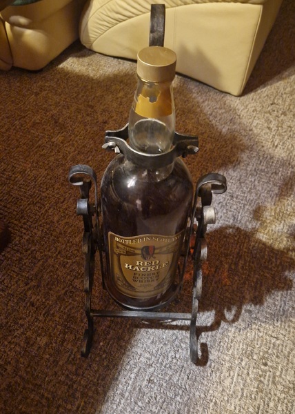 4,5 Liter Red Hackle Finest Scotch Whisky im schmiedeeisernen Schwenkständer.