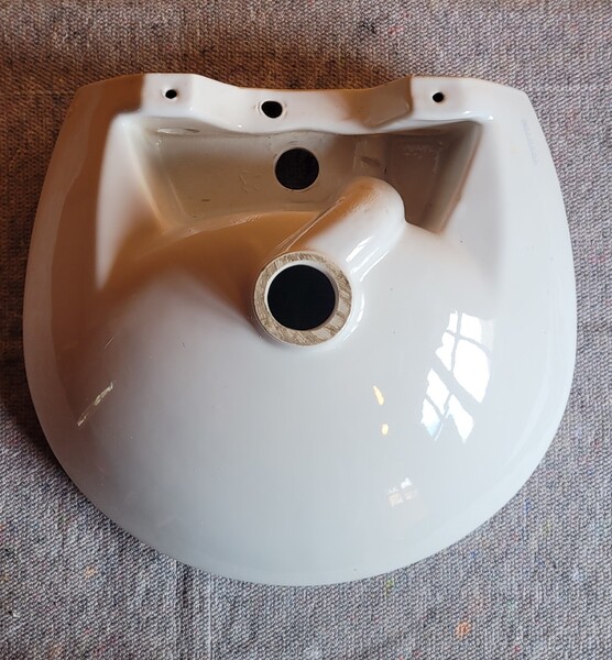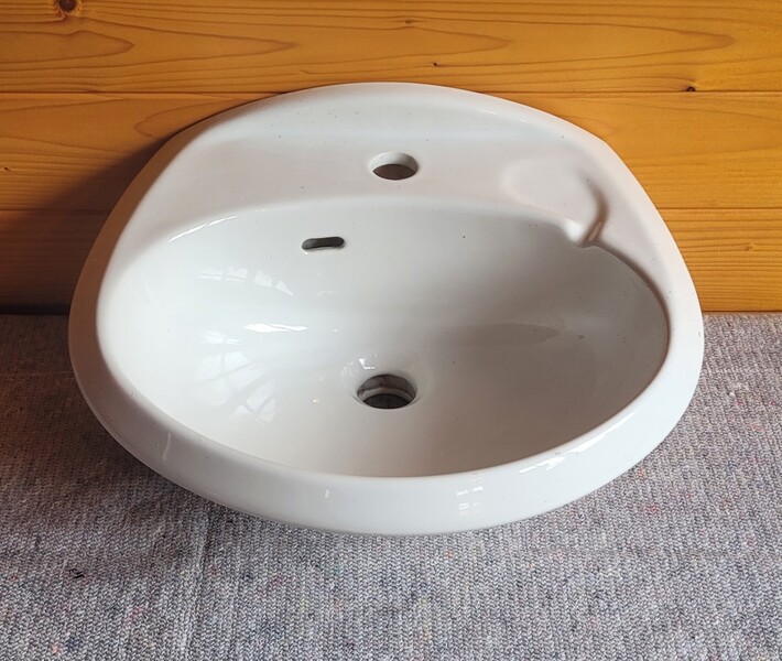 Keramik Handwaschbecken, Breite von 45 cm. Der Waschtisch in Weiß, überzeugt durch seine klassische und zeitlose Form. Das Handwaschbecken ist durch seine kompakte Größe, ideal auch für kleine Räume geeignet. Lieferumfang: ohne Befestigung, ohne Armaturen, ohne Rosette, ohne Siphon nur 25.-€ bei Abholung.