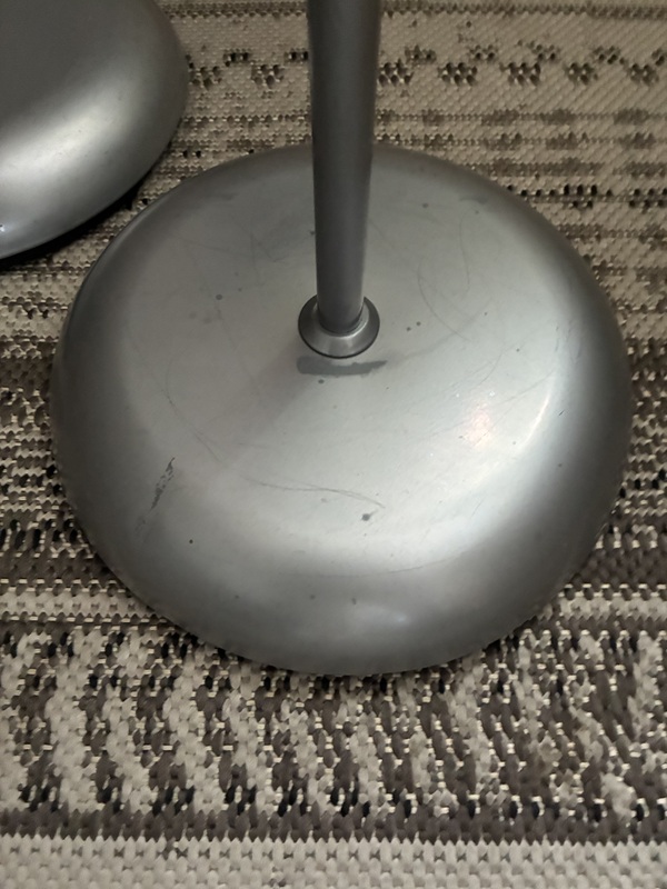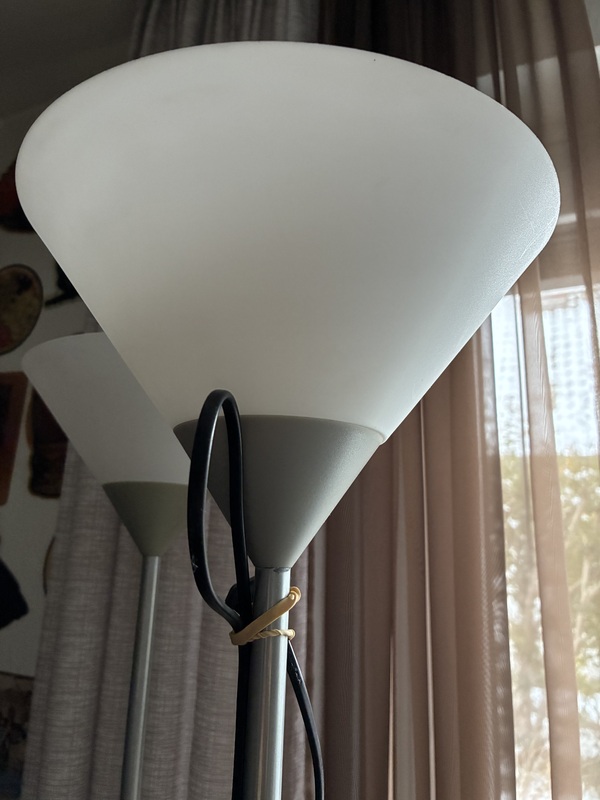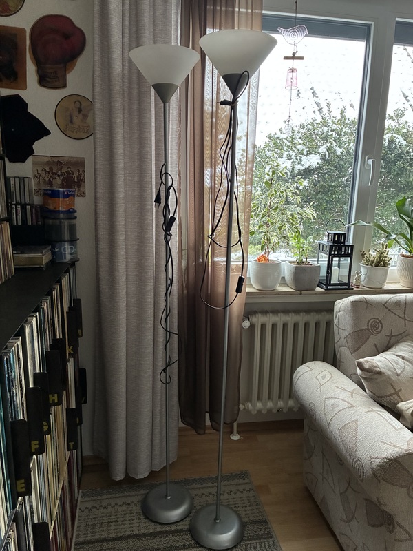 Zwei Stehlampen, circa 1,80 m hoch mit deutlichen Gebrauchsspuren im Fuß, aber voll funktionsfähig