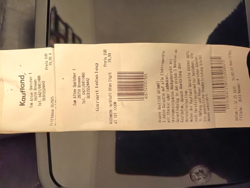 Verkaufe einen Heissluftofen nur 2 mal benutzt (einmal für Pommes und einmal für Hähnchen).Da eine Drehfunktionen vorhanden ist,schon alleine für das Hähnchen, kann man da auch Schaschlik drin garen,die Spieße dafür sind auch dabei.Da der Ofen erst im Juli 2025 gekauft wurde ist noch Garantie vorhanden.Insgesamt waren es 3 Jahre.Ich möchte gerne 60€ Festpreis dafür haben.