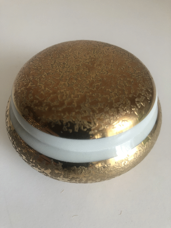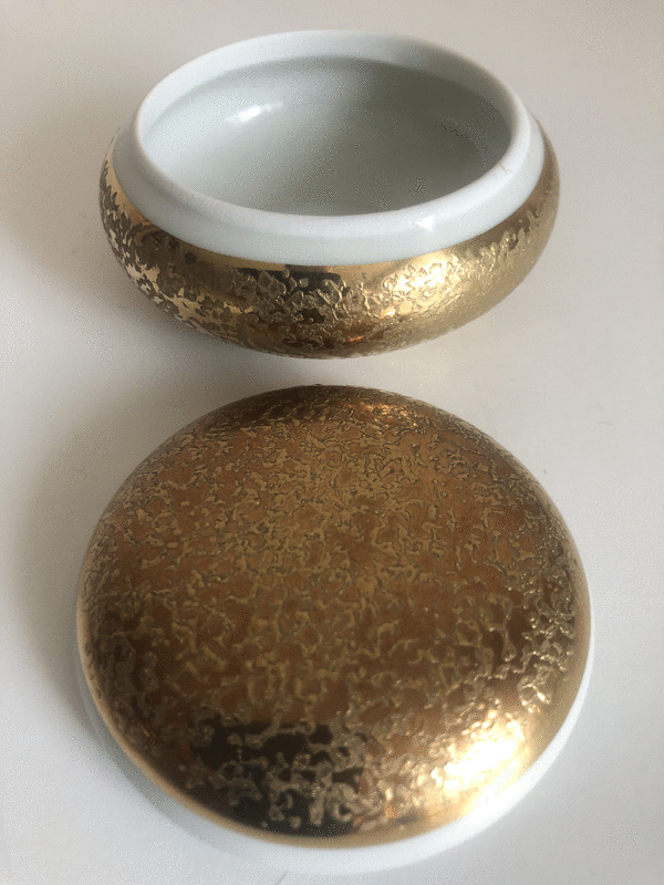 Bavaria KPM - Seltenes Fundstück! Diese handgemachte Deckeldose von der Porzellan Manufaktur Royal Bavaria KPM ist ein perfekter Behälter für kleine Gegenstände. Es würde auf Ihrer Kommode oder als Vitrinenstück wunderschön aussehen. Seit Jahrzehnten in Familienbesitz, wurde nie genutzt, sondern diente als Vitrinenobjekt, daher sehr guter Vintage Zustand. Keramik mit Golddekor, Material: Porzellan, Farbe: Gold/Weiß, Maße: Höhe 4,5 cm, Durchmesser 7,0 cm. Diese hochwertige Rarität sucht jetzt einen liebevollen Neubesitzer und ist ein tolles Geschenk. Privatverkauf, siehe Fotos, Tierfreier Nichtraucherhaushalt! jetzt nur 25€, Versand (€ 4,00) bei Kostenübernahme möglich
