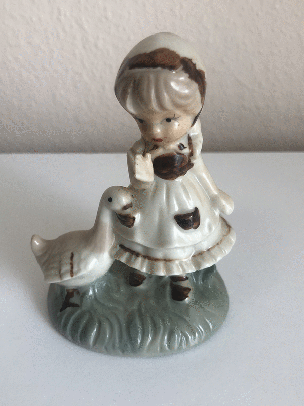 kleine Porzellanfigur Mädchen mit Gans, Höhe ca. 10 cm, Breite 7 cm.