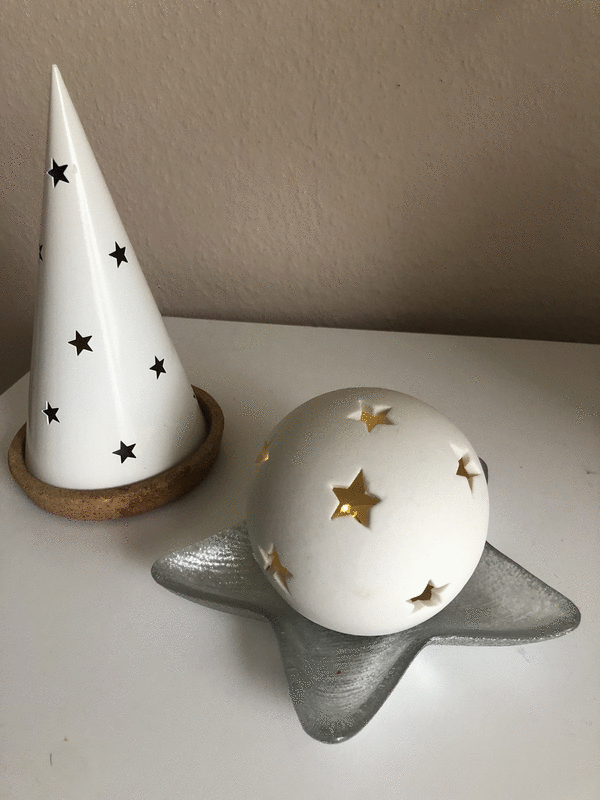 Einzigartiges Design - Die Weihnachtsbaumfigur aus Metall bzw. Weihnachtskugel aus Naturstein, mit schaltbarer LED-Beleuchtung und Untersetzer, ist ein außergewöhnliches Dekorationselement, das jedem Raum Eleganz verleiht. Ideal zum Platzieren auf einer Kommode, einem Regal oder einem Tisch. Farbe: Beige, Maße ca.: Baum H17,5 x D10 cm, Kugel D8 cm, Stern Untersetzer Glas D15cm. Diese entzückenden und hochwertigen Dekorations-Artikel sind das perfekte Geschenk für Geburtstage, Feiertage oder als Mitbringsel. Unbeschädigt Artikel im neuwertigen Zustand, Tierfreier Nichtraucherhaushalt! Privatverkauf, siehe Fotos, jetzt nur 10,00€/Stück oder zusammen 18€, Versand (€ 5,00) bei Kostenübernahme möglich