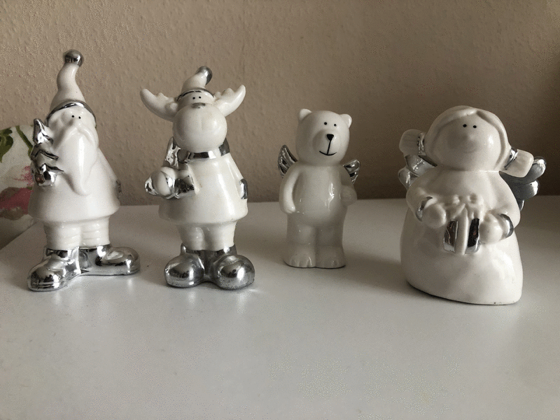 Einzigartiges Design – Diese schönen Porzellanfiguren sind ein außergewöhnliches Dekorationselement, das jedem Raum Eleganz verleiht. Ideal zum Platzieren auf einer Kommode, einem Regal oder einem Tisch. Farbe: Weiß / Silber, Höche ca.: 10 cm, Diese entzückenden und hochwertigen Dekorations-Artikel sind das perfekte Geschenk für Geburtstage, Feiertage oder als Mitbringsel. Unbeschädigt Artikel im neuwertigen Zustand, Tierfreier Nichtraucherhaushalt! Privatverkauf, siehe Fotos, jetzt alle zusammen nur 12,00€, Versand (€ 4,50) bei Kostenübernahme möglich
