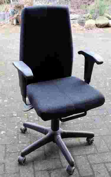 Sehr gut erhaltener Bürostuhl mit vielfältigen Verstell-Möglichkeiten. Polster schwarzgrau.