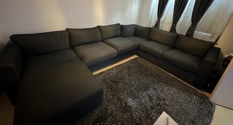 Wir verkaufen diese grau-blaue Sofa Sitzecke von Ikea.