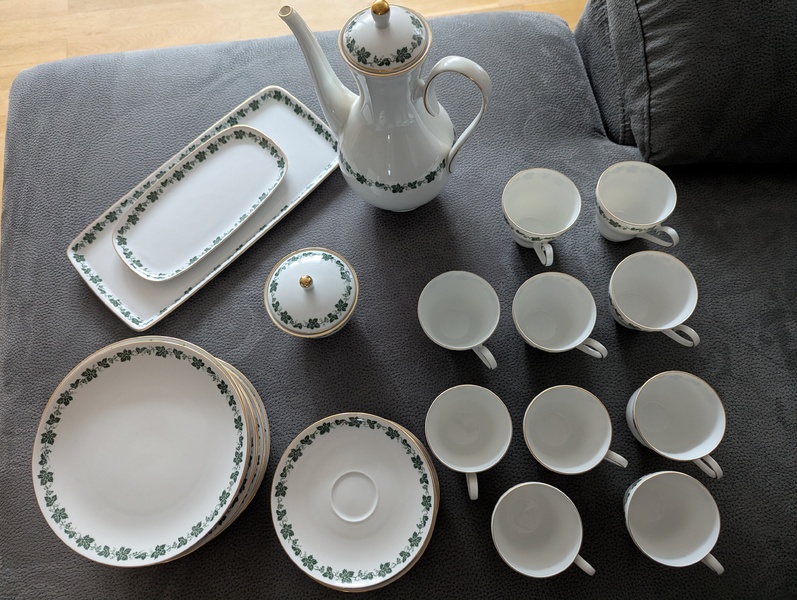 schönes Service, mit Weinranken, alle Teile in Ordnung, für 10 Pers vollständig, (für 12 Pers fehlen 2 Tassen)