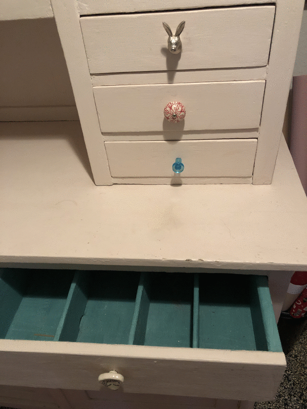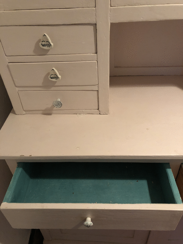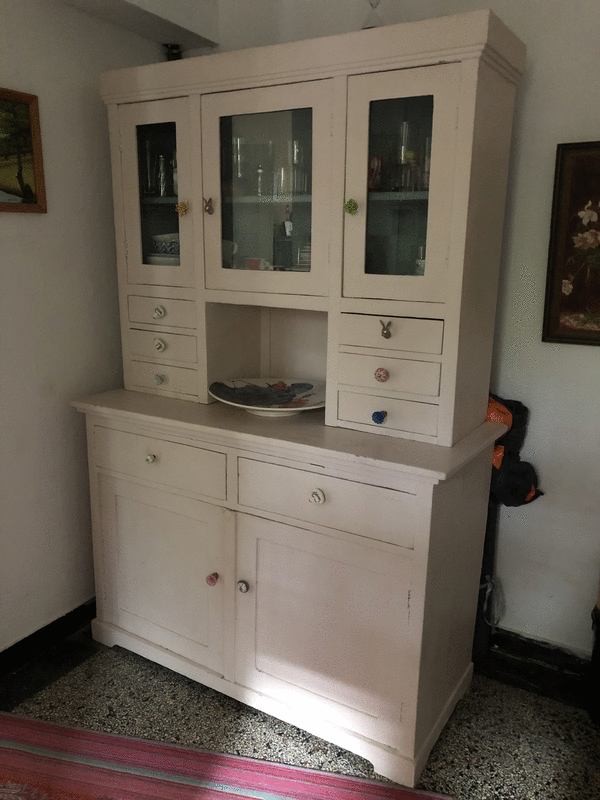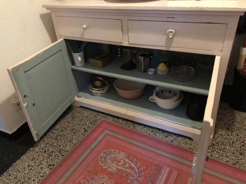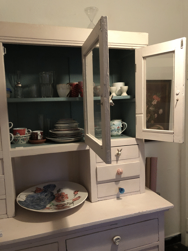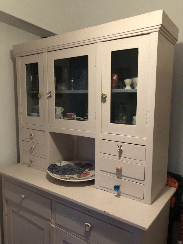 Ich verkaufe wegen eines Umzugs Oma´s überarbeitetes Küchenbuffet. Es wurde mit Kreidefarbe aussen und innen gestrichen, aussen in hellrosé und innen in taubenblau. Ein wirklicher eye-catcher!