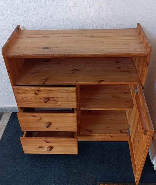Viel Stauraum: drei Schubladen, eine Tür, ein Regalfach