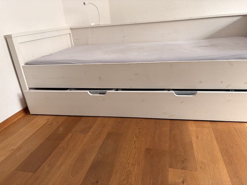 - Massiv-Holzbett 90x180 cm mit Bettkasten