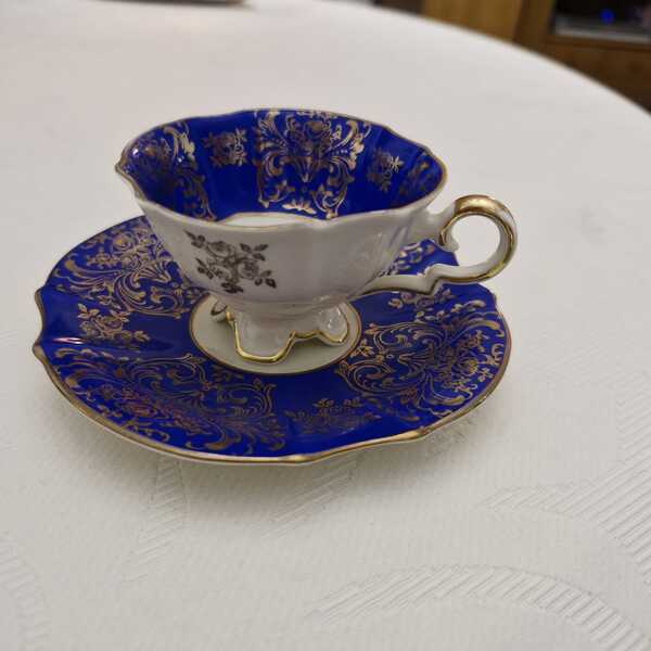 Biete eine Moccatasse in einem sehr guten Zustand an. Die Farben sind wohl Kobalt und Gold. Die Moccatasse hat keine Beschädigungen.