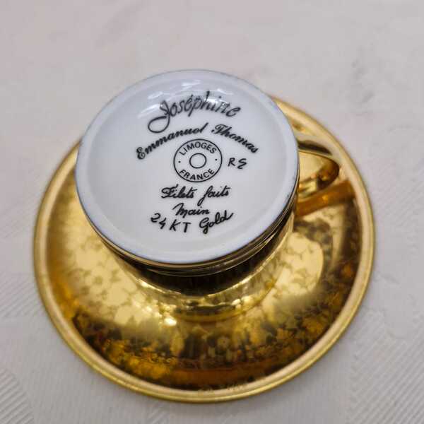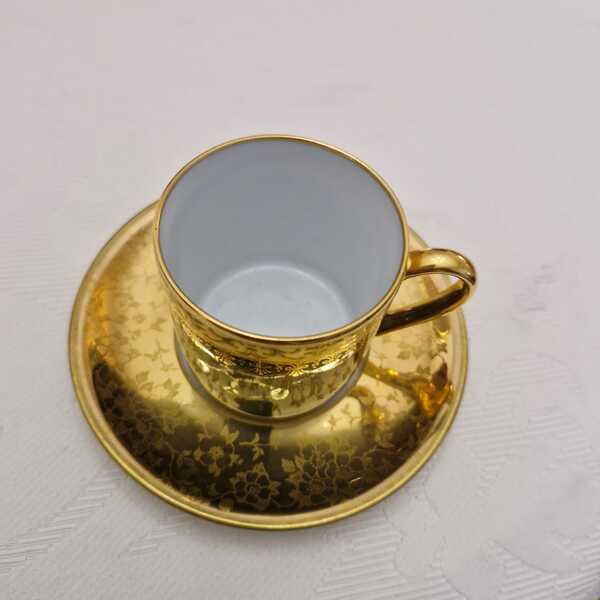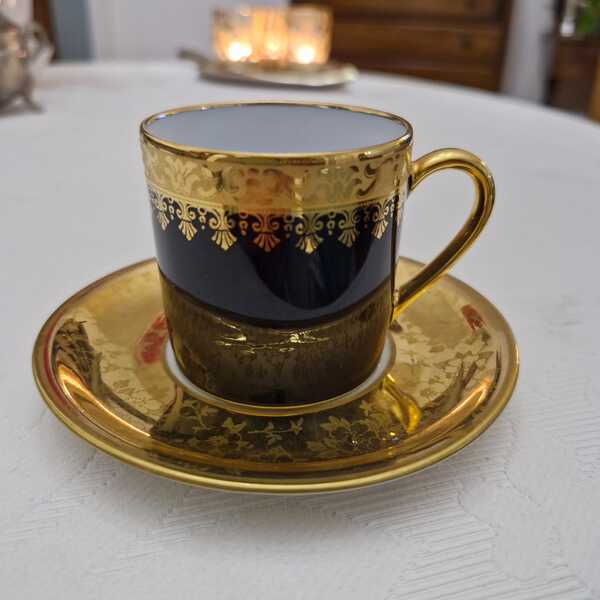 Biete eine Moccatasse Limoges 24 Karat Gold in einem sehr guten Zustand an. Gestempelt Made in France. Die Moccatasse hat keine Beschädigungen.