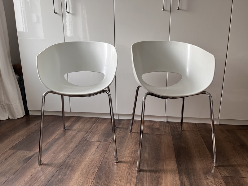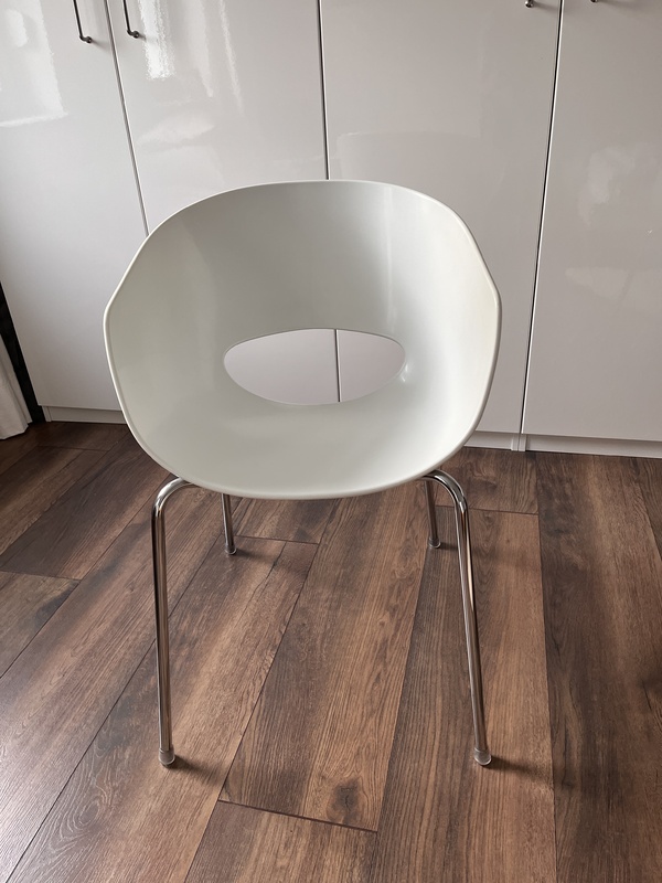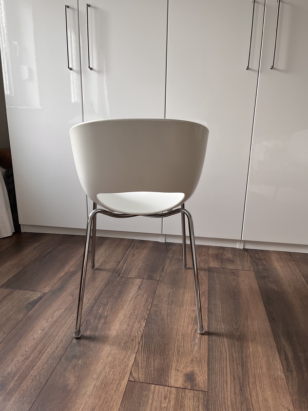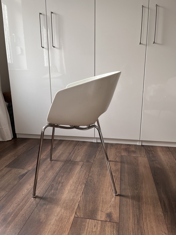Verkaufe 4 weiße Orbit Stühle aus weißem Kunststoff verchromten Beinen. Die Stühle sind gebraucht und weisen Gebrauchsspuren auf. Verkaufe alle Stühle nur im Set für 90 Euro . Ort zum Abholen Loxstedt bei Bremerhaven.
