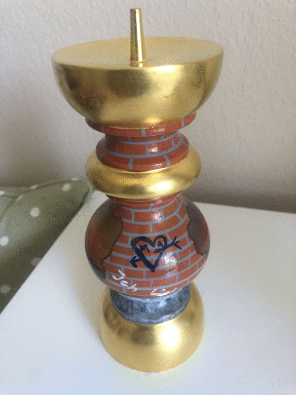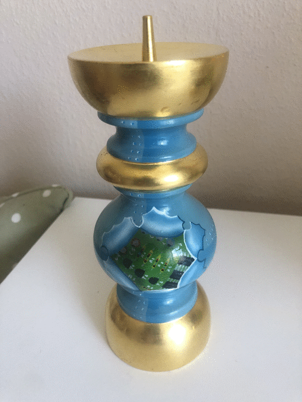 Seltenes Fundstück - Kerzenständer mit Motiv. Ein einzigartiger Kerzenhalter aus Holz im Arts and Crafts Design für einen tollen Boho-Look.