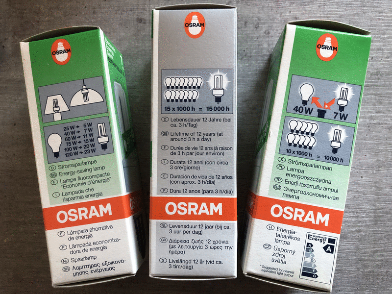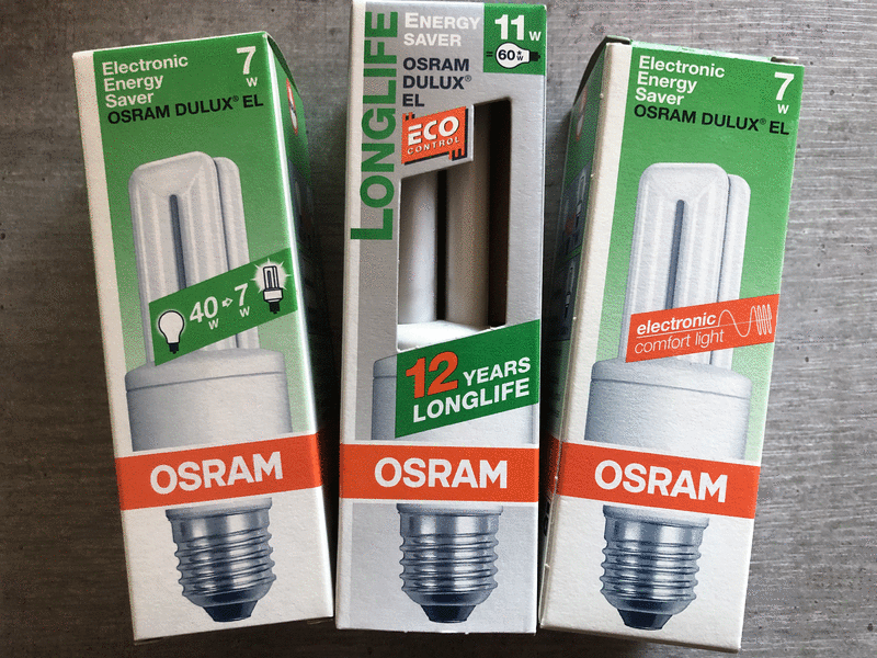 Typ Energie Saver 7W (40W) und 11W/ (60W) 41-827 220-240V E27, [Energieklasse A], Extrem langlebig, da extrem schaltfest. Die OSRAM DULUX EL garantiert, was sie verspricht: extreme Sparsamkeit und extreme Haltbarkeit. Bis zu 80% Energieeinsparung im Vergleich zu normalen Glühlampen machen sich von Anfang an positiv auf der Stromrechnung bemerkbar. Neuer, unbenutzter und unbeschädigte Artikel in der Osram Originalverpackung, Privatverkauf, siehe Fotos, Neupreis 24,95€/Stück jetzt nur 6€/Stück oder alle 3 Stück zusammen für nur 15€, Versand (€ 4,00) bei Kostenübernahme möglich