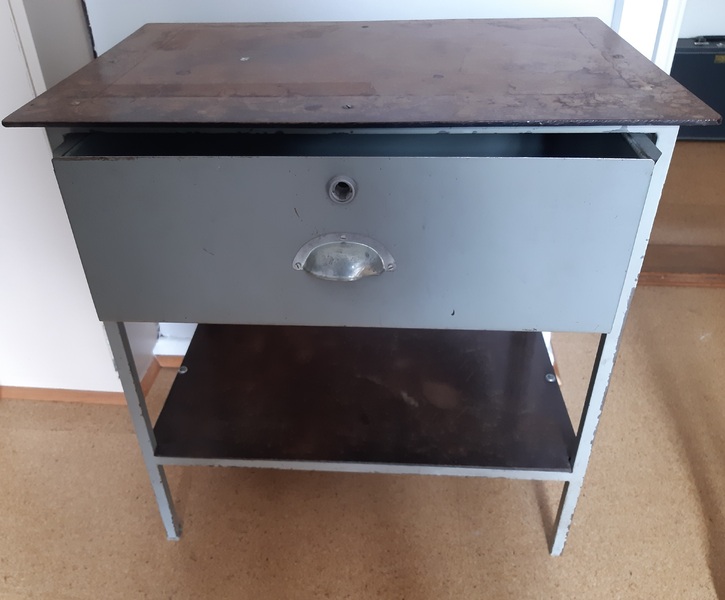 einen kleinen Beistelltisch (VB 10 Euro) und 2 Metalltische mit Schublade (VB je 10 Euro) abzugeben.