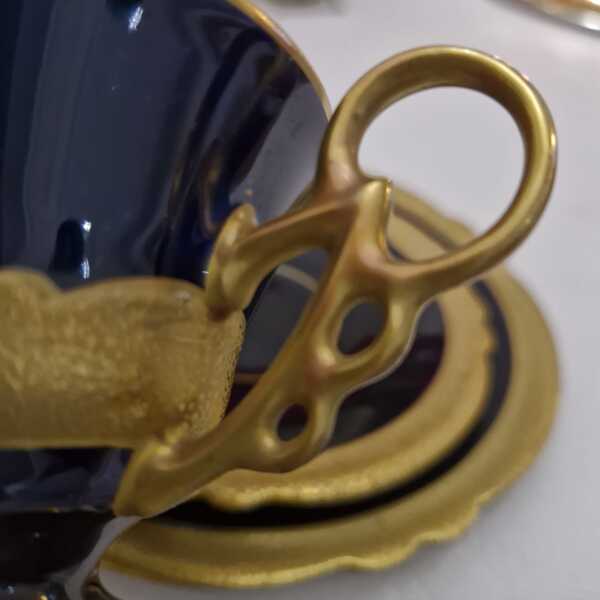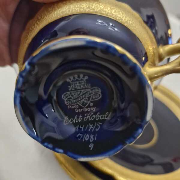 Biete ein wunderschönes 3teiliges aus echtem Kobalt und dazu in einem wirklich sehr guten Zustand. Keine Kratzer oder Beschädigungen. Die Echtheit belegen die Stempel auf allen drei Teilen. Sehr schön gearbeiteter Griff an der Tasse.