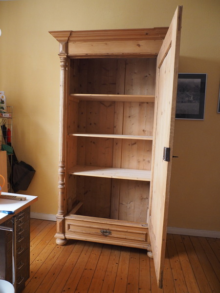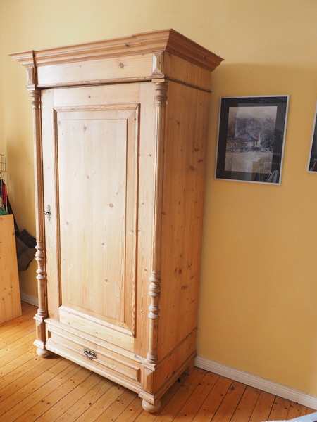 Ich verkaufe einen schönen und gut erhaltenen Weichholzschrank aus der Gründerzeit, ca. 1900.