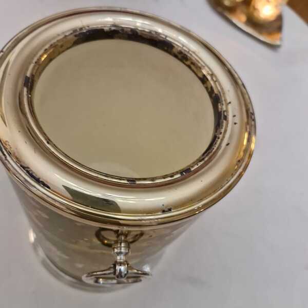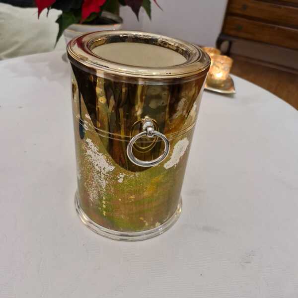 Biete einen Sektkühler, der versilbert ist, an. Der Sektkühler hat keine Beschädigungen, er müsste nur etwas poliert werden. Er hat eine klassische Form und hat einen Durchmesser von ca 14,5 cm und eine Höhe von ca 24 cm