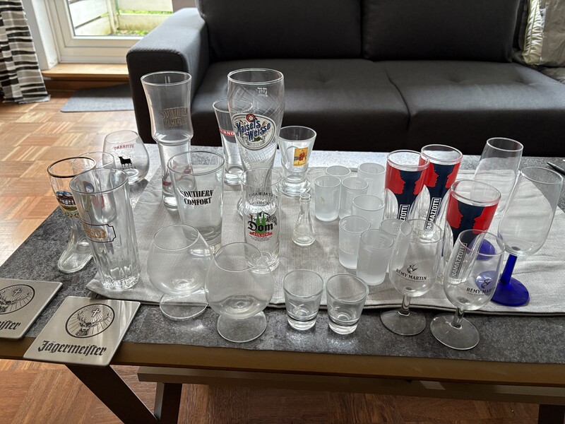 - Sessel, diverse Gläser, Flaschenkühler, Bierkrug