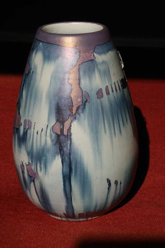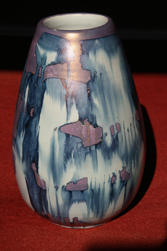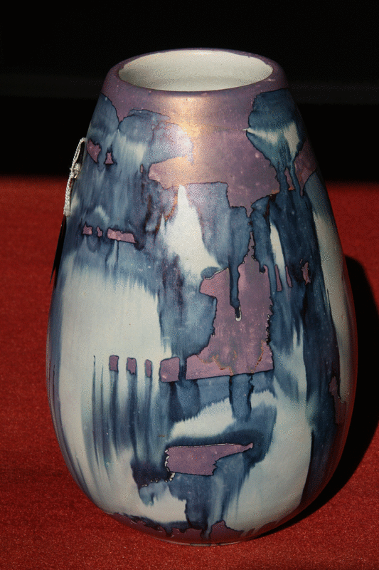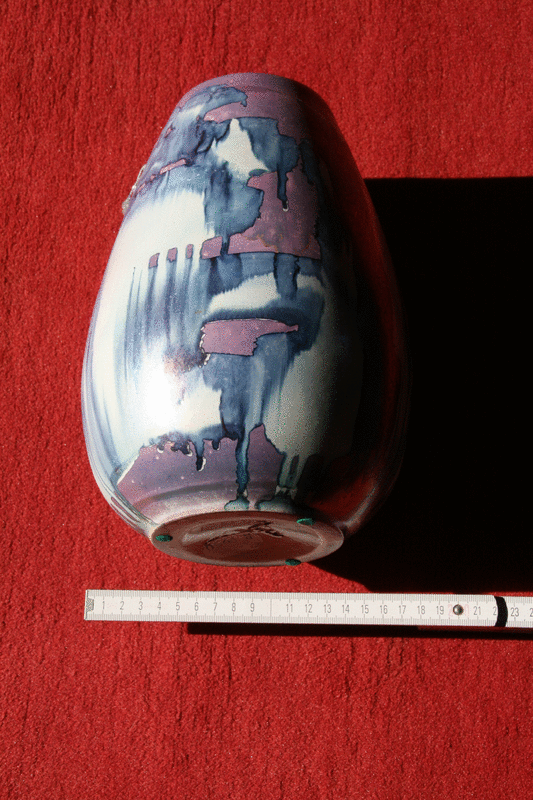 Die Vase hat ein -wie auf den Lichtbildern zu erkennen- tolles Design und alle originalen Aufkleber befinden sich noch an der Vase: "Handarbeit Made In Germany" und "Silberdistel Fayencen".