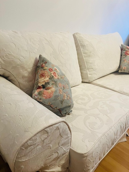 Für das Sofa habe ich noch zwei geblümte Bezüge. Außerdem gibt es noch passende kleine Kissen dazu.