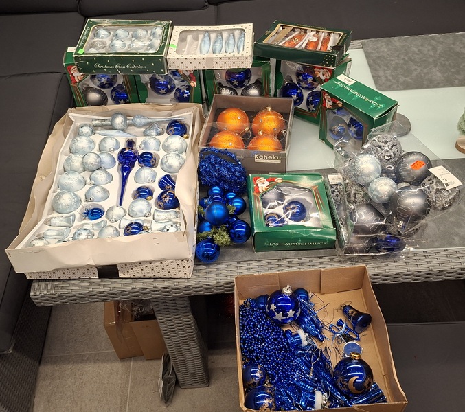 Tannenbaumschmuck besteht aus Glas und Kunststoff sh. Bild.