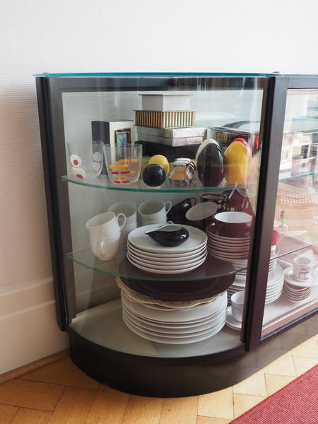 Ich verkaufe eine klassische Glasvitrine aus den 50er Jahren des 20. Jahrhunderts. Sie besticht durch die „abgerundeten Ecken“ aus Glas und die klare und filigrane Bauweise.