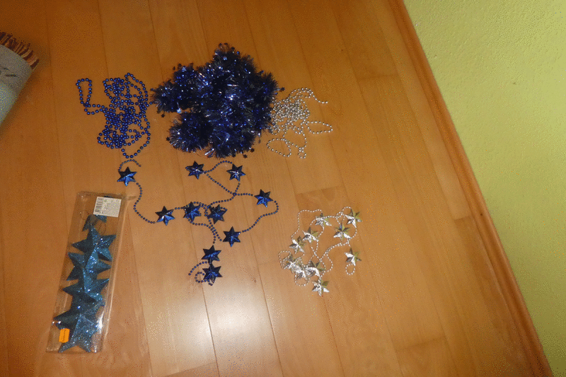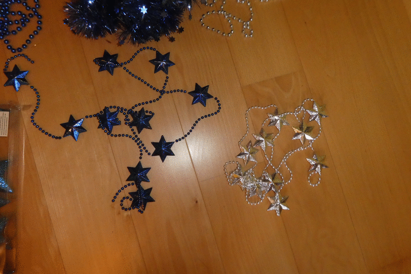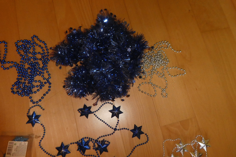 5 Sterne in blau für den Weihnachtsbaum mit Anhänger 2 Ketten eine blau eine silber 2 Ketten mit Sternen eine blau eine silber ein blaues Dekoteil für den Baum, weiß nicht wie ich es beschreiben soll alles zusammen 15 Euro VB