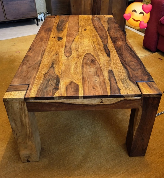 Angeboten wird ein massiv vollholz Tisch mit einer wunderschönen Maserung.