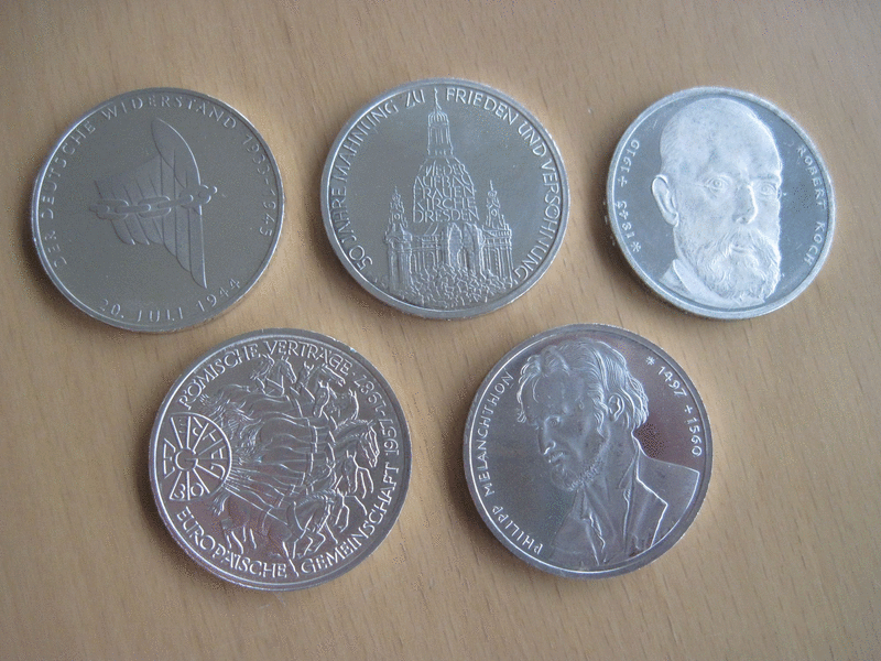 5 x 10 DM Münzen Silber Gedenkmünzen