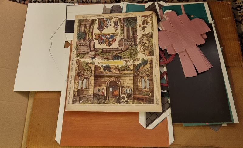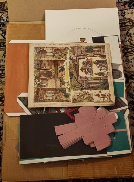 Vintage ca. Anfang/Mitte 1980er, großer Bastelsatz mit vielen farbigen Karton Bögen, komplett & unbenutzt, inkl. 4 seitiger Bauanleitungen