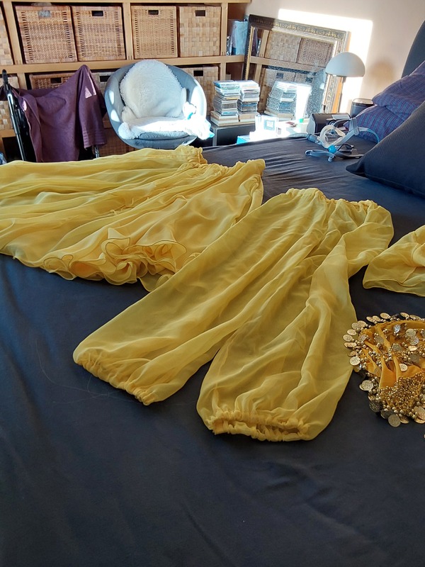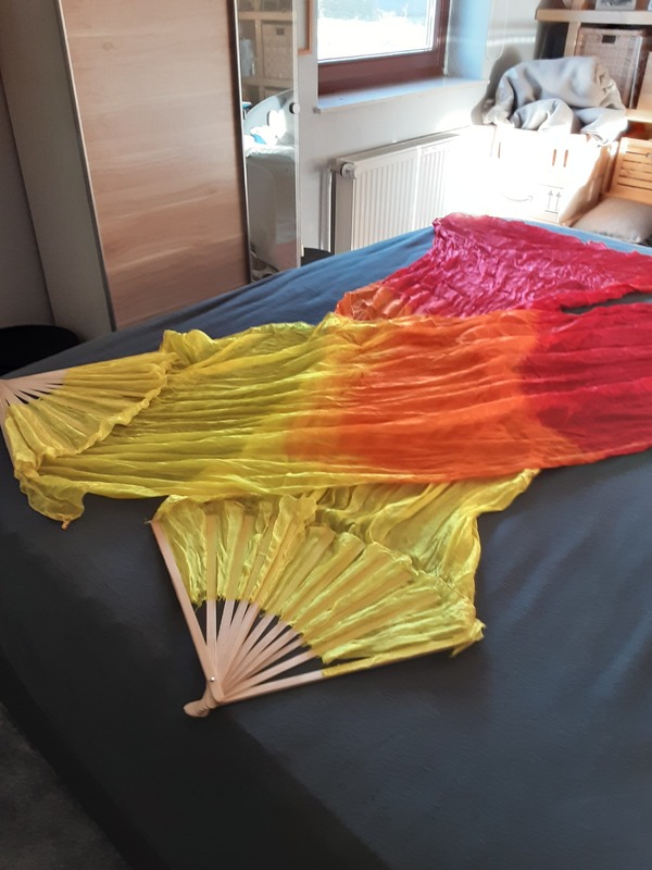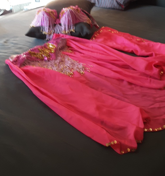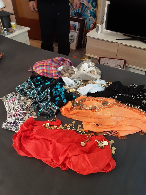 Wegen Hobbyaufgabe verkaufe ich diverse Bauchtanz-Kostüme Größe M /S, 1 Catsuit schwarz mit langem Arm und Netzeinsatz, Hüftgürtel und-Tücher, Schleier und Fächerschleier - s. Fotos, weitere können bei Interesse erstellt werden.