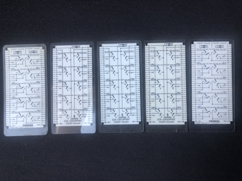 Was für ein unglaublicher Dachbodenfund! Fünf Zählkarten für das ESK-Relais. Die ESK Technik wurde Anfang der 1970er Jahre in der öffentlichen Vermittlungstechnik und in Nebenstellenanlagen eingesetzt. Durch den Einsatz von ESK Relais konnte eine Steigerung der Leistung und eine Reduzierung der Baugröße von Telefonanlagen und Vermittlungsstellen erreicht werden. Diese Rarität sucht jetzt einen liebevollen Neubesitzer, gehören zur Dekoration in eine Ausstellung oder als Hingucker in Ihre Vitrine, ein tolles Geschenk für einen Sammler oder eine Trophäe für sich selbst, Privatverkauf, siehe Fotos, jetzt nur 2€ je Karte oder alle 5 Karten für 8€, Versand (€ 2,00) bei Kostenübernahme möglich