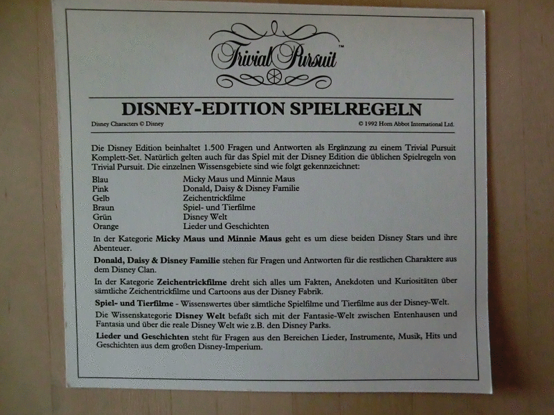 Verkaufe das unbenutzte, aber ältere -Trivial Pursuit Disney Edition von 1990 - und den Kartensatz mit 1500 Fragen 1992.