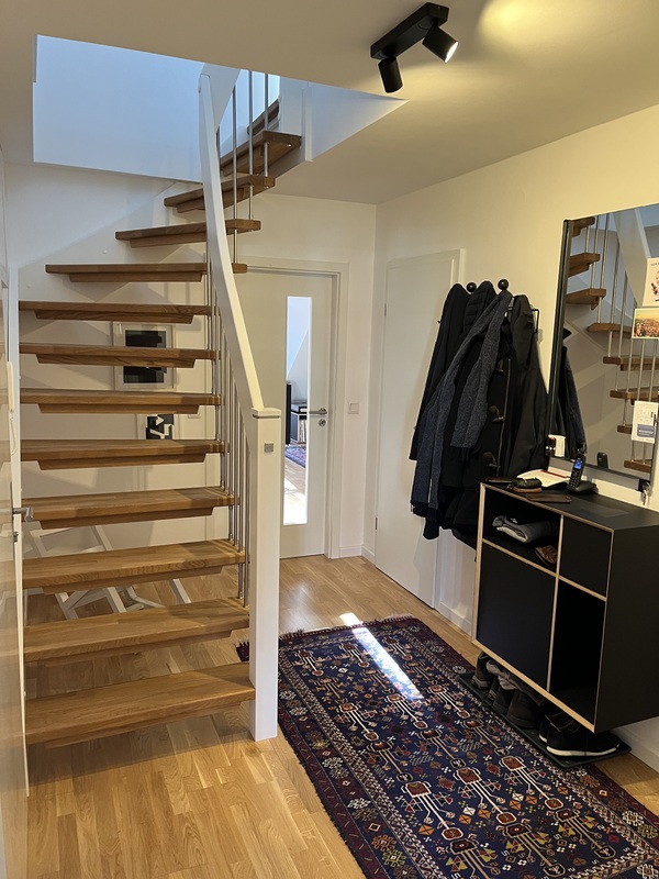 Die gutgeschnittene Whg wurde in 2021 komplett saniert: Eichen-Parkett in allen Wohnräumen, neue Heizkörper, neue Türen, Elektrik, neues Duschbad, neue Küche (Bulthaup mit Liebherr-, Bora-, Gaggenau-Geräten), neue Eichen-Innentreppe in 2022, neue Kunststoffe-Isolierfenster in 2024