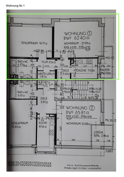 Gesamtfläche: 62,4 qm, der Balkon wird zur Hälfe angerechnet.