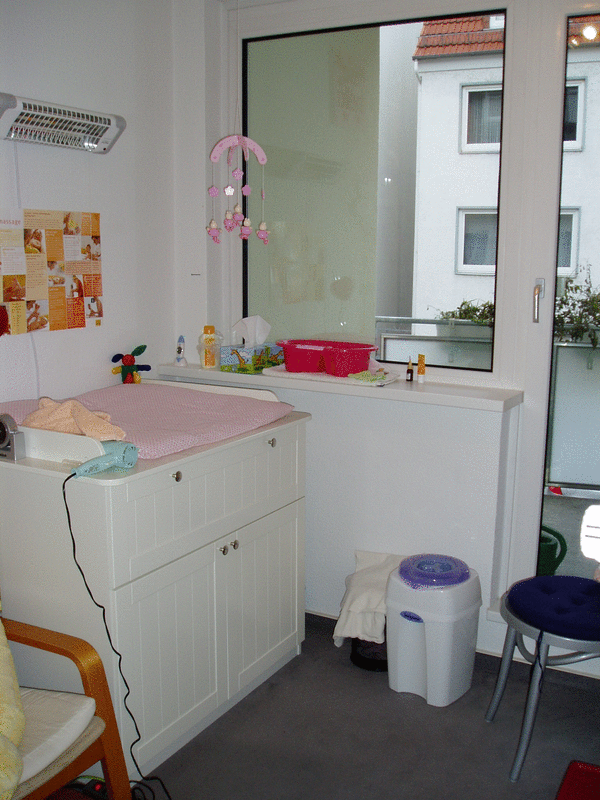 1. Zimmer: ca. 29 m² (Durchgangszimmer zum 2. Zimmer, keine Tür zum 2. Zimmer, Laminat)