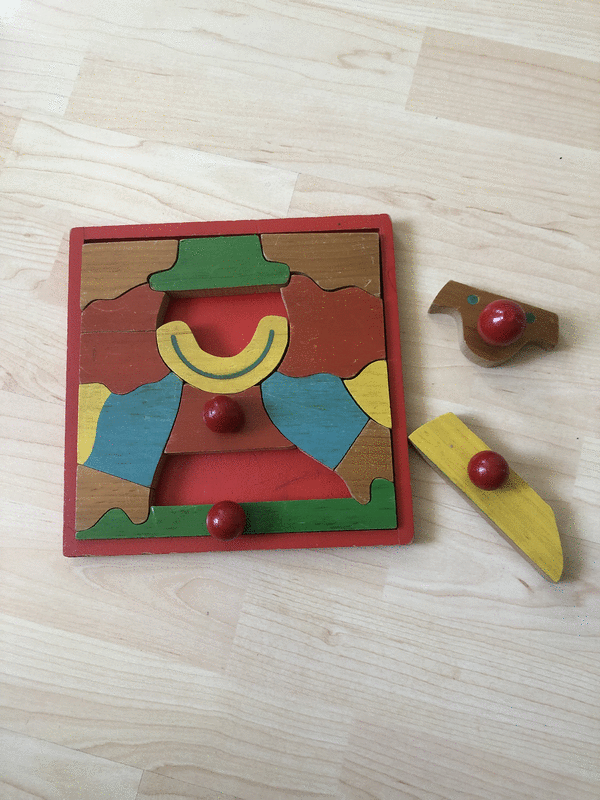 Handgreifbrett - Für die ersten Puzzle-Versuche. Mit dem liebevoll gestalteten Steckpuzzle-Set aus Echtholz können sich jetzt auch die Kleinsten an das Puzzeln wagen. Das Clown-Motiv wird die Kinder begeistern und mit viel Freude beschäftigen. Die einzelnen 17 bunten Teile haben teilweise einen Holzknopf auf der Oberseite, damit die Teile gut greifbar für kleine Kinderhände sind. Das Herausnehmen und Einsetzen der Teile geht leicht und problemlos. Förderung der Grob- und Feinmotorik sowie die Auge-Hand-Koordination. Ist über lange Zeit ein viel bespieltes Holzspielzeug. Maße: ca. 21 x 21 x 2cm, ab 12 Monaten. Dieses großartige Lernspielzeug sucht jetzt einen liebevollen Neubesitzer und ist ein kostbarstes Geschenk für Ihr Kind bzw. Enkelkind, für Freunde und Familie. Unbeschädigter Artikel in gutem Zustand, Privatverkauf, siehe Fotos, Tierfreier Nichtraucherhaushalt! Neupreis 29,95€ jetzt nur 10€, Versand (€ 4,00) bei Kostenübernahme möglich