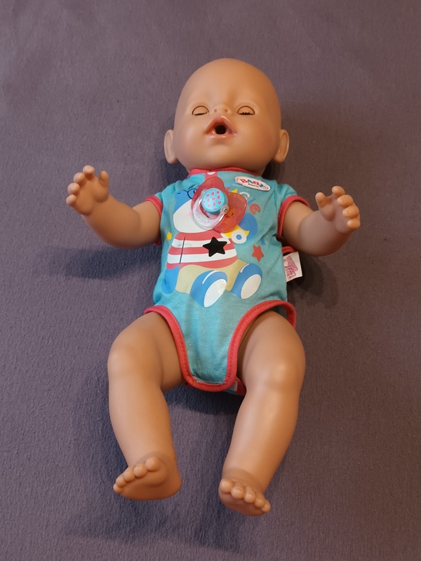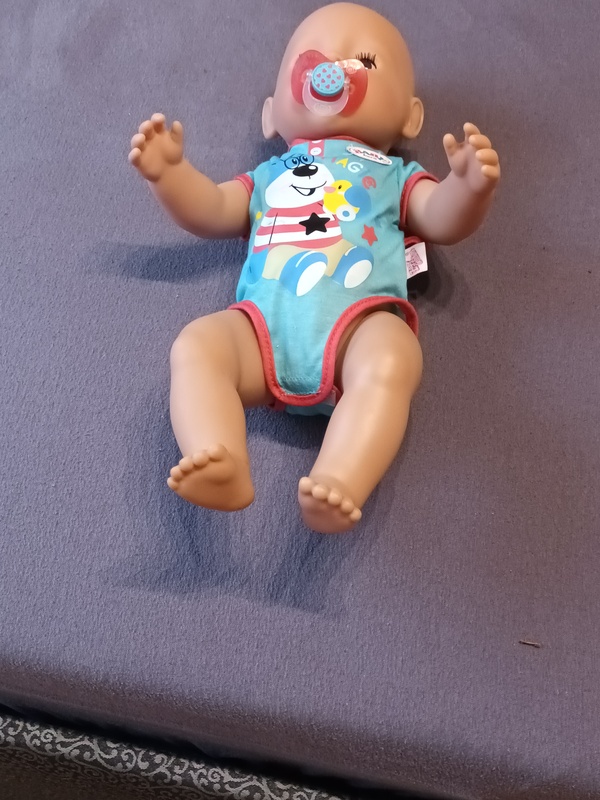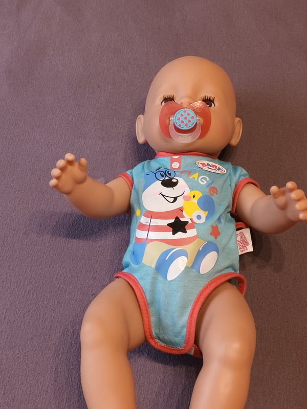 Hallo ich biete eine Babyborn-Puppe Magic Boy. Es wurde nur 1 bis 2 mal mit ihr gespielt. Originalkarton ist vorhanden, aber ein wenig eingerissen, kann aber geklebt werden. Dabei sind 1 Schnuller, 1 Fläschchen mit 2 Aufsätzen, 1 Töpfchen, 1 Teller mit Löffel, 1 Windel, 1 Geburtsurkunde. Die Anleitung ist auch dabei. Es fehlen 1 Minikettchen, die Mütze und der Babyborn-Brei. Wir hätten gern 24. Euro für unsere beiden Enkel dafür.