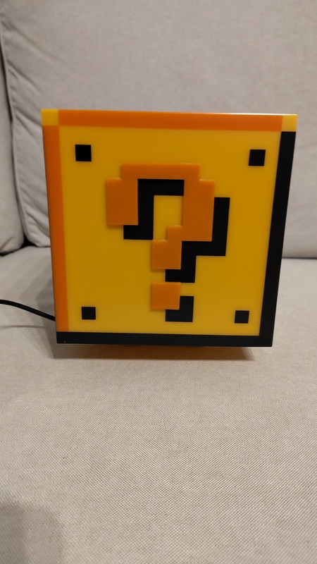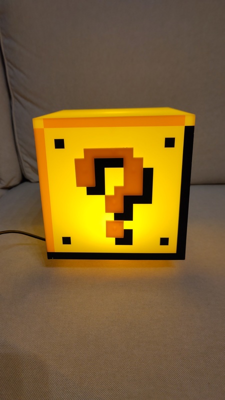 Ich verkaufe diese ?-Block Lampe aus Super Mario mit Soundeffekt. Der Sound ist wenn Mario eine Münze einsammelt und ertönt immer wenn man die Lampe ein- oder ausschaltet.