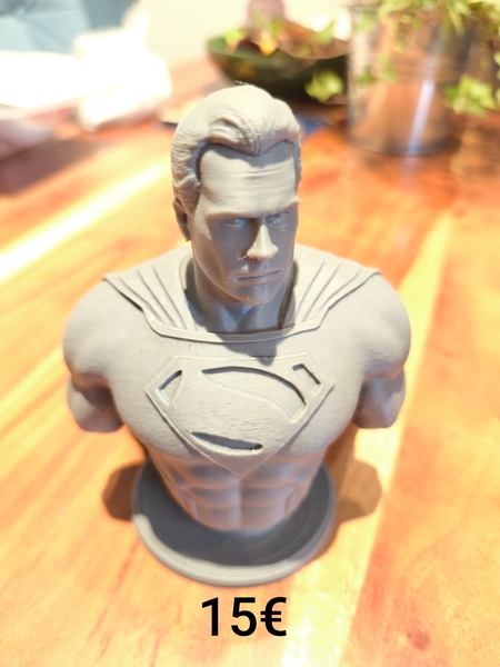 Zum Verkauf stehen 2 Büsten, eine von Supermann unbemalt und eine von Deadpool vierfarbig gedruckt.