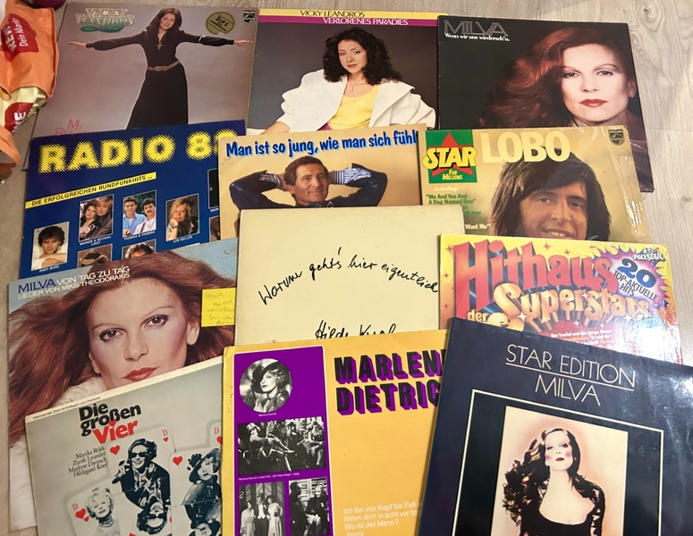 Vicky Leandros, Nana Mouskouri, Milva, Hildegard Knef, Marlene Dietrich, Edith Piaf, Yves Montand, Charles Aznavour, Bing Crosby, Reinhard Mey, Gilbert Bécaud, Judy Collins, diverse Klassik-Interpreten (Karajan, Rubinstein, Maazel u. v. a.).