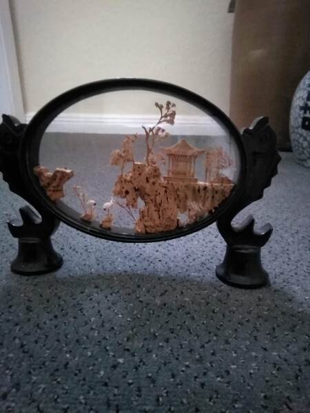 2 chinesische Korkschnitzereien