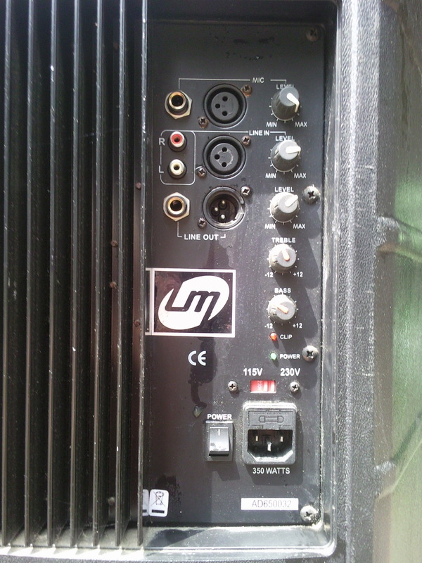 2 x Aktivbox, italienische Marke LM, 12“ Bass-Mitte / 1“ Treble-Horn, 250 W, Mic In XLR mit Levelpoti, Line In XLR und Stereo-Cinch mit Levelpoti, Line Out XLR mit Levelpoti, Bass/Treble, Clipanzeige, 115V/220V Anschluss, superflacher Frequenzgang (im Übungsraum selbst in 3 m Entfernung mit Gesangsmikro auf Boxen gerichtet kein Feedback bei mittlerer Übungslautstärke !). Stück VB 240,- Bei Bedarf passende Boxenstative vorhanden. Tel.: 01777386061