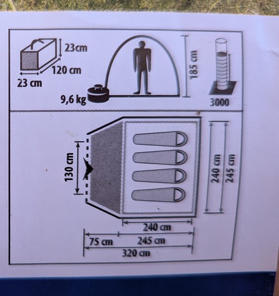 Dazu gibt es noch zwei Stangen, um den geöffneten Eingang aufstellen zu können und eine passende Bodenplane.
