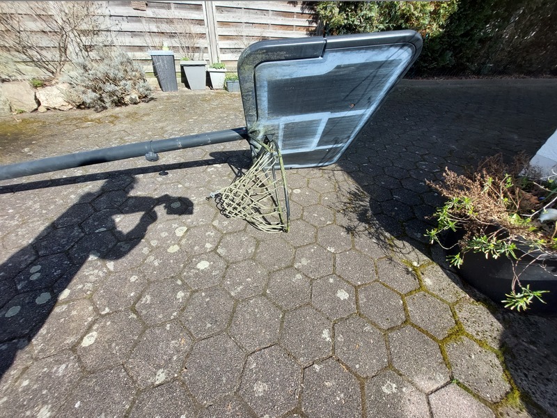 Die Schrauben sind was rostig haben es in 3 Teile zerlegt das Netz ist ok - ganz aber was grün.