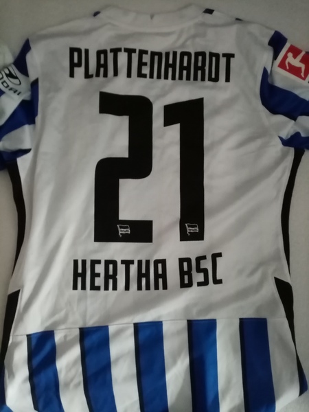 Originale Bundesliga Trikots von Hertha BSC Plattenhard, Mitch Weiser Bayern München, Kaiserslautern Gr. 42 Preis je 35 Euro, Selbstgestrickter Werder-Schal 3 Meter Preis 100 Euro sowie Deutschland Pullover Gr. 42 100 Euro. Sporttaschen ab 15 Euro.