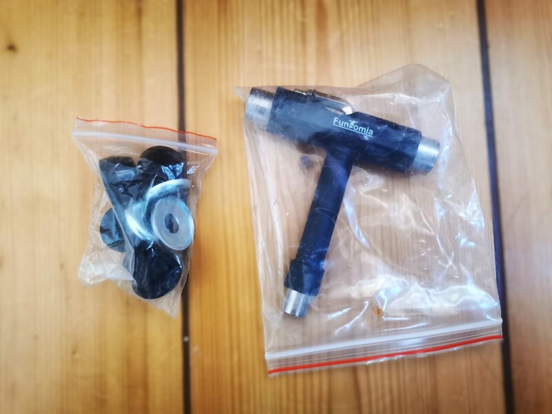 Im Lieferumfang enthalten: 1x FunTomia Longboard mit Mach1 ABEC-9 Kugellager, 1x T-Tool (All-in-one Werkzeug) und 4er Set 85A Bushings und Washer (Bushings sind die Lenkgummis in deiner Achse)