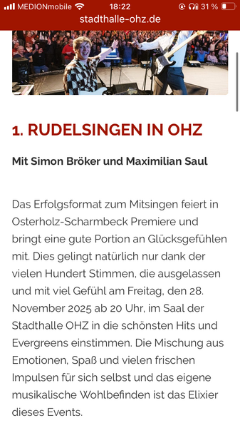 Habe 2 Karten für das 1. Rudelsingen in der Stadthalle Osterholz Scharmbeck abzugeben.